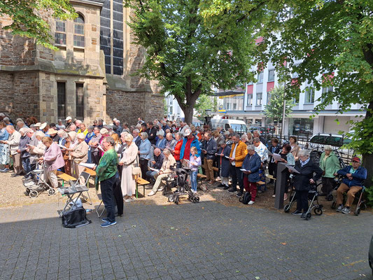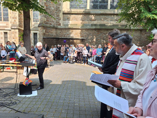 Rund 400 Besucherinnen und Besucher, Gläubige aus vielen christlichen Gemeinden in Neuwied, hatten sich am Pfingstmontag zum ökumenischen Gottesdienst versammelt. Ort des Geschehens war der Innenhof bei der Marktkirche. Das Wetter spielte mit und so entstand eine festliche und dichte Atmosphäre.